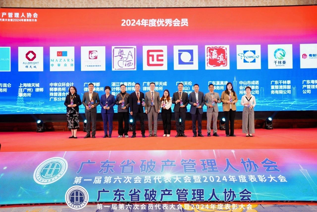 2025年3月22日,廣東省破產管理人協會第一屆第六次會員代表大會暨2024年度表彰大會在廣州召開。廣東省破產管理人協會監事長、中山成諾黨支部書記、主任會計師胡敏珊,中山成諾清算重整部經理吳少芳受邀出席本次會議。